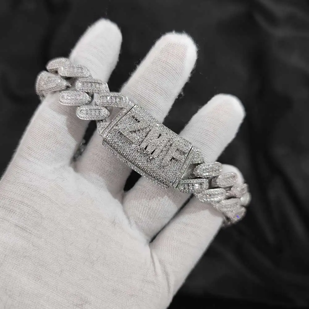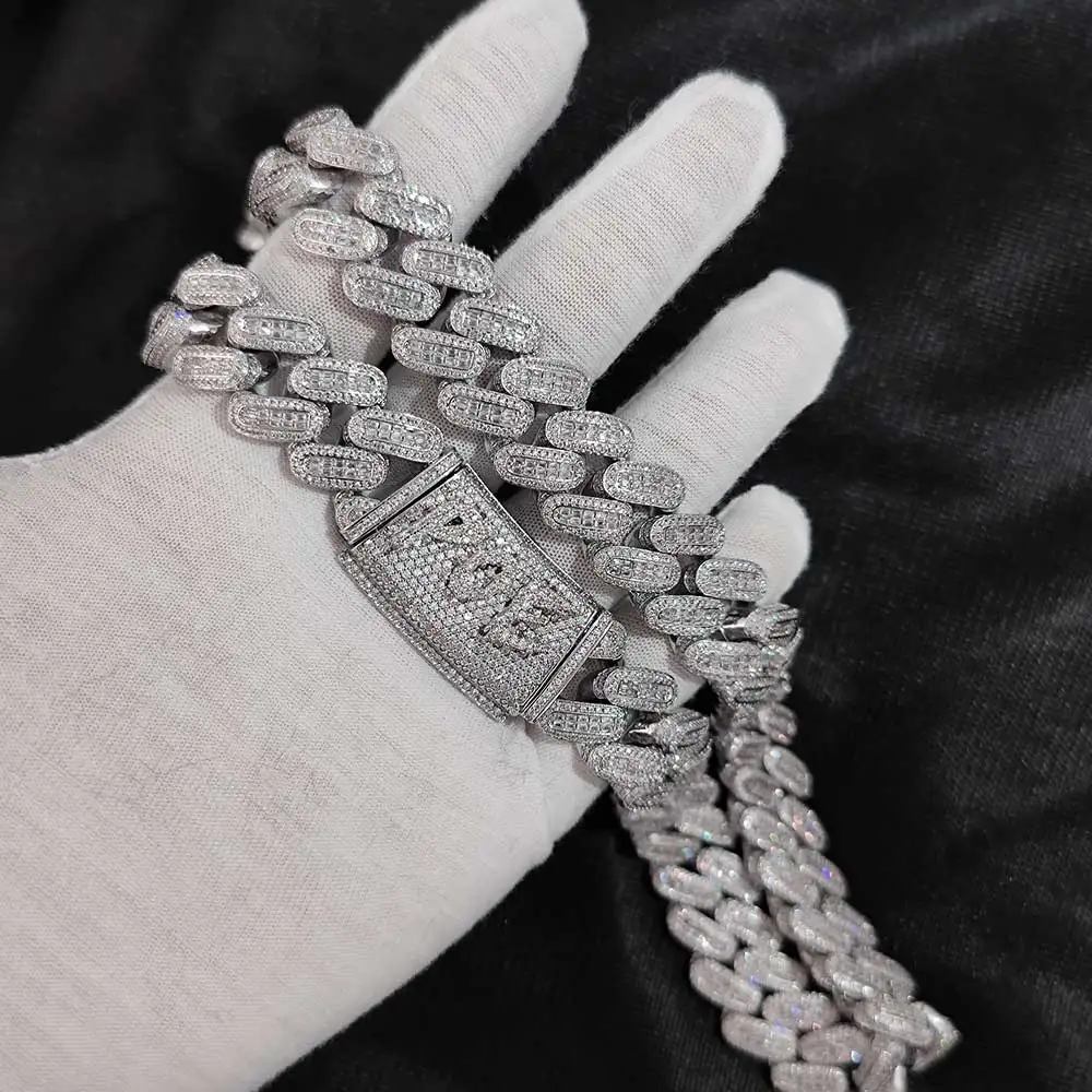 18mm Bling Rectangle/Round Diamond Cuban Link Chain Hiphop Custom Name Cuban Chain Necklace For Men Rapper Jewelry