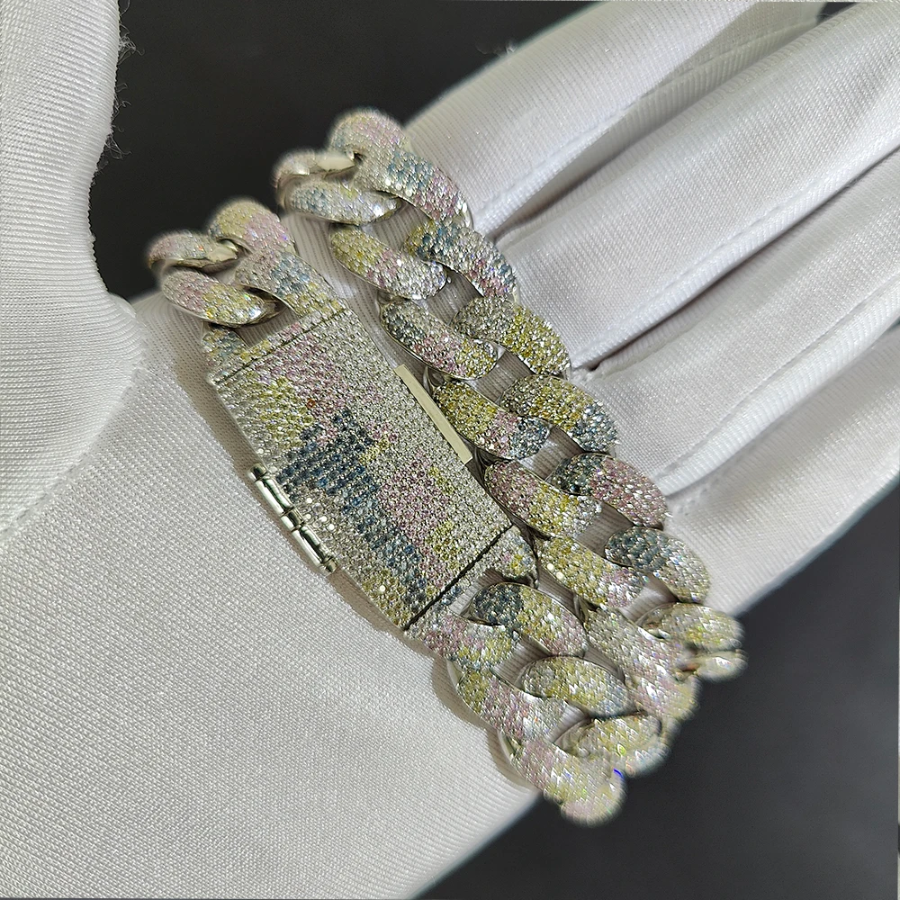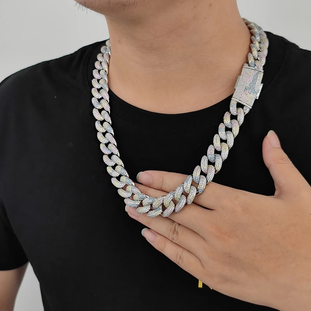 Hip Hop 18mm Iced Out Cuban Necklace Silver Plated Full Pave Bling Zircon Chain Chunky Necklace For Women