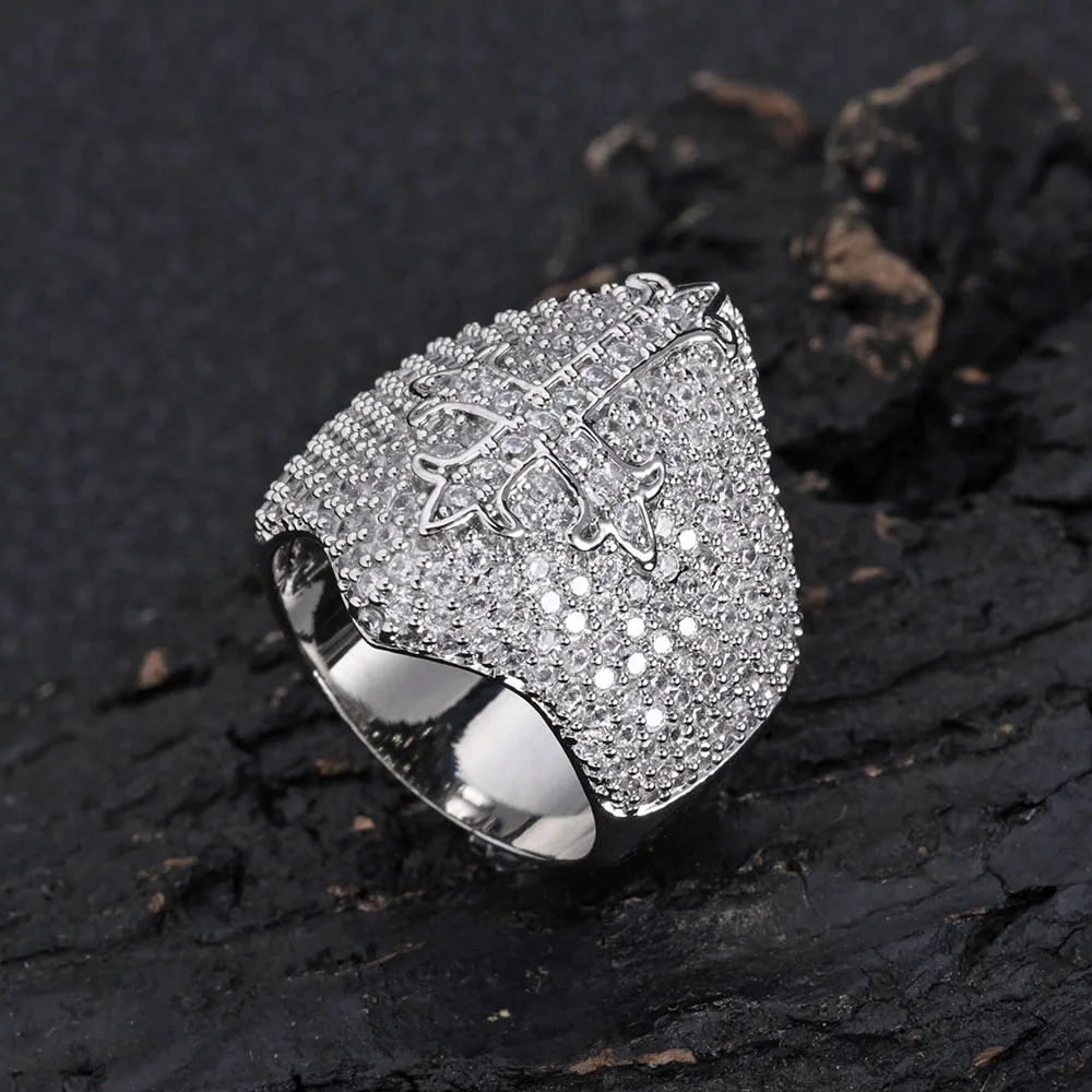 Hip Hop Luxury Religions With Christianity Jewelry Iced Cubic Zirconia Big Cross Ring For Men Women