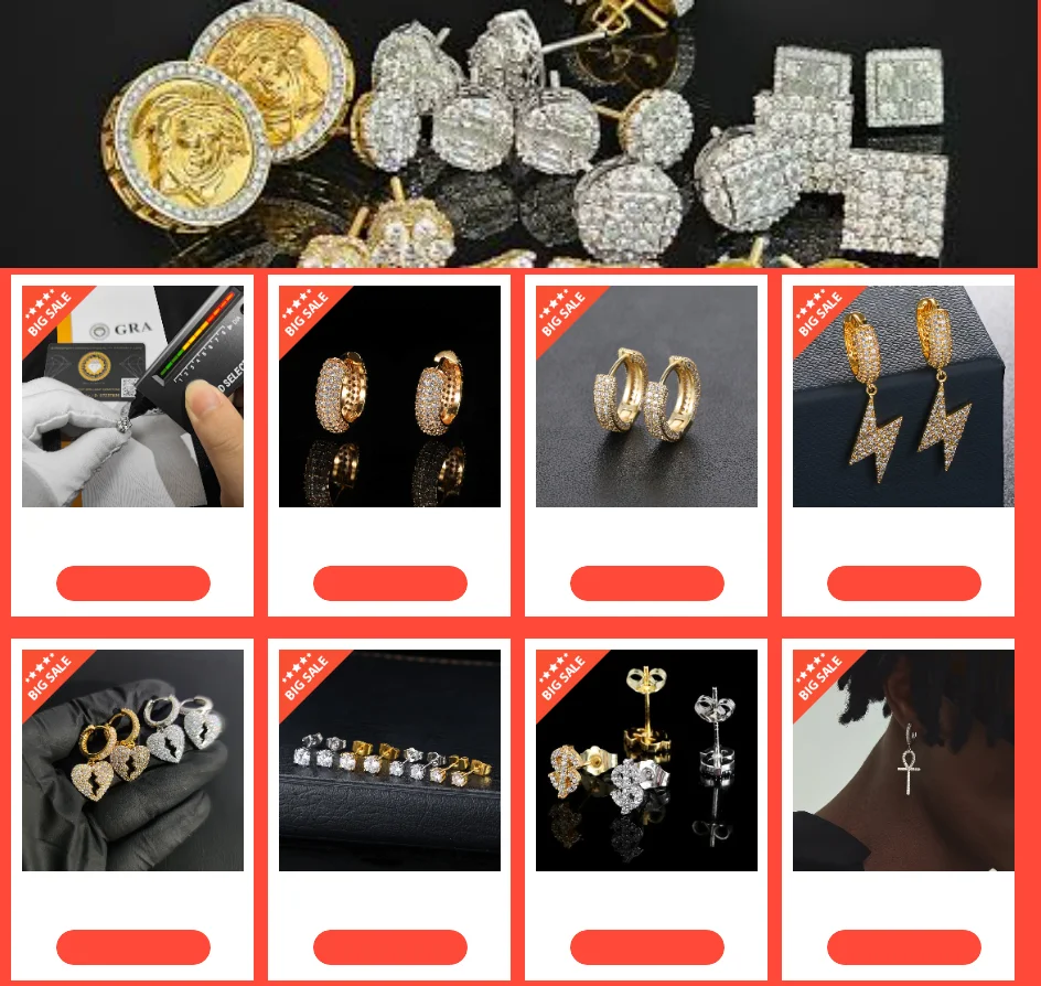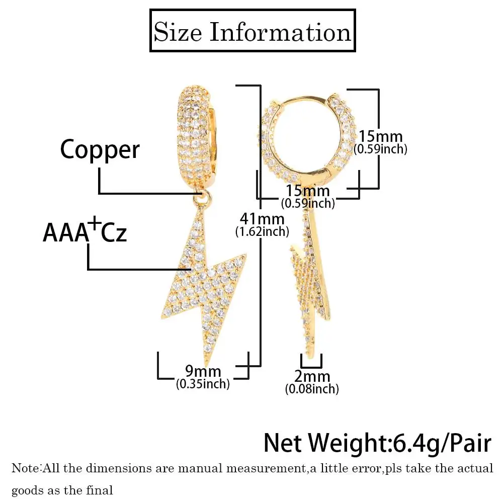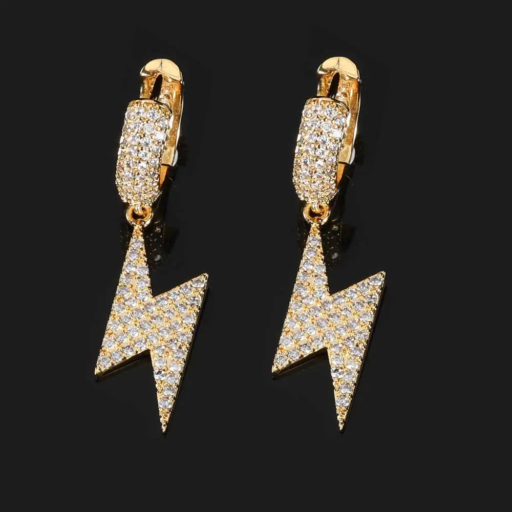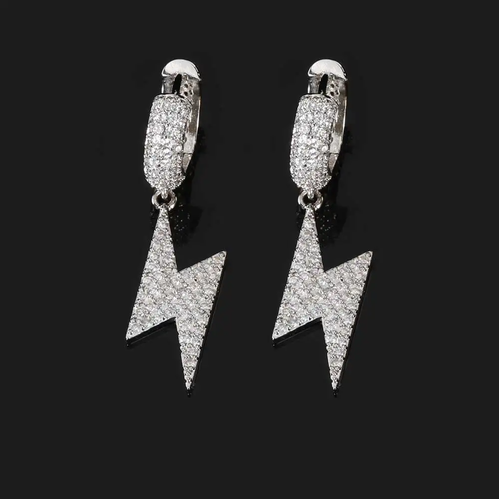 Iced Out Lightning Jewelry Hip Hop For Men Bling Hoop Drop Earrings