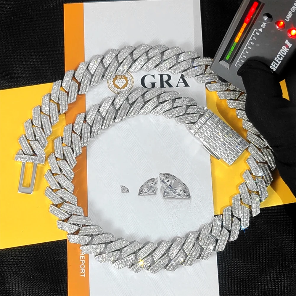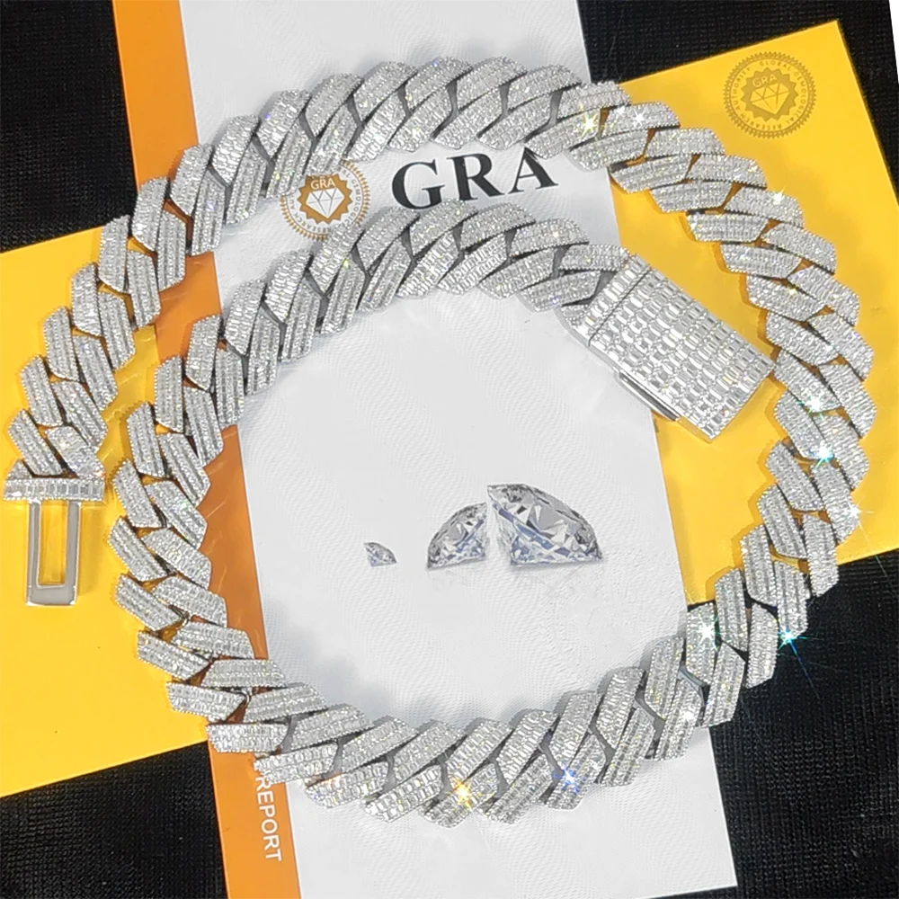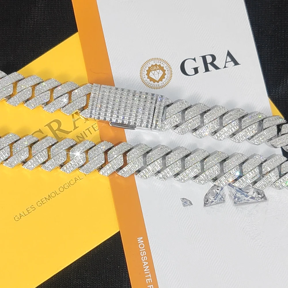 VVS Moissanite 20mm 2 Rows Cuban Chain Rectangle Diamonds 100% 925 Silver Cuban Necklace with GRA Certificate Jewelry