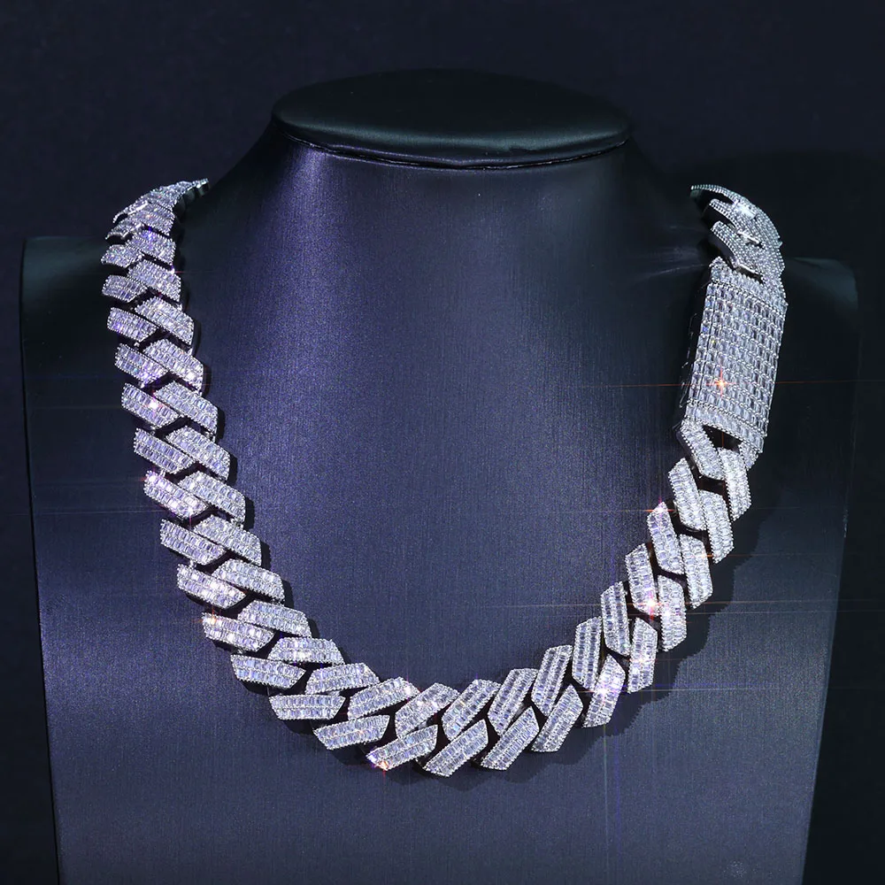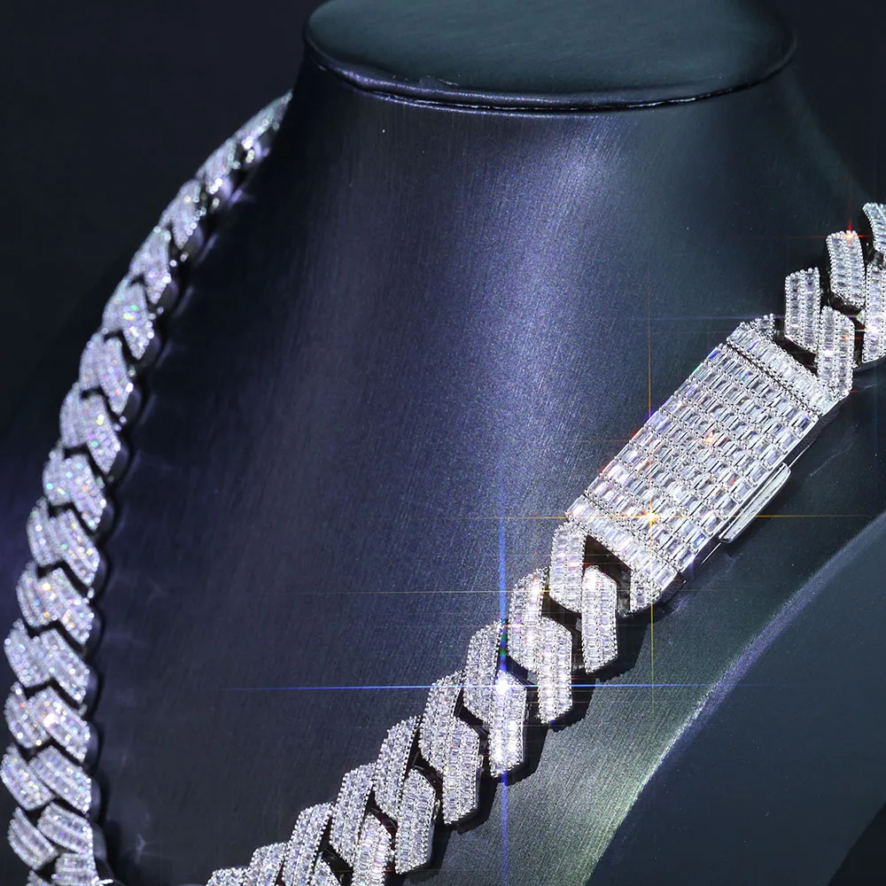 20mm 2 Rows Rectangle Diamonds 100% 925 Silver Cuban Pass Diamond Tester Necklace VVS Moissanite Cuban Link Jewelry